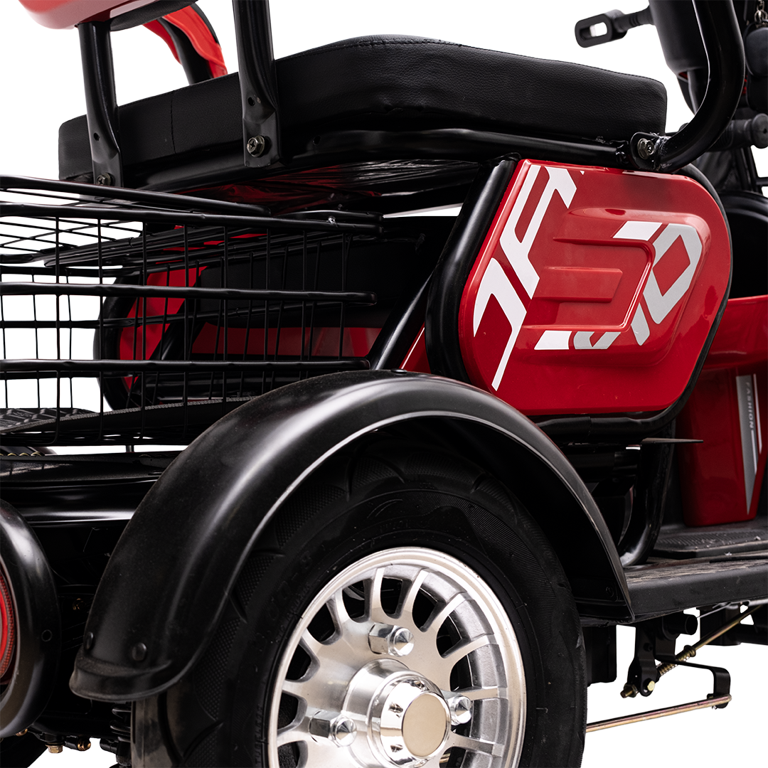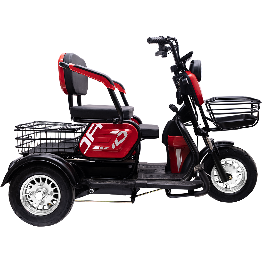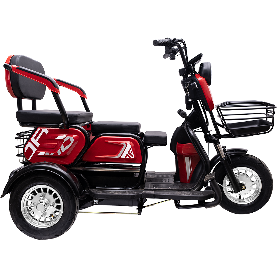 Электрический трицикл с задним приводом, не требует регистрации в ГАИ и водительских прав. предназначенный для устойчивых и комфортных поездок, по городским и частным маршрутам.  Номинальная мощность 240 Вт пиковой 600Вт, аккумулятор на 48 В и скорость до 25 км/ч делают модель функциональной и удобной в повседневной эксплуатации. Грузоподъёмность — до 200 кг.