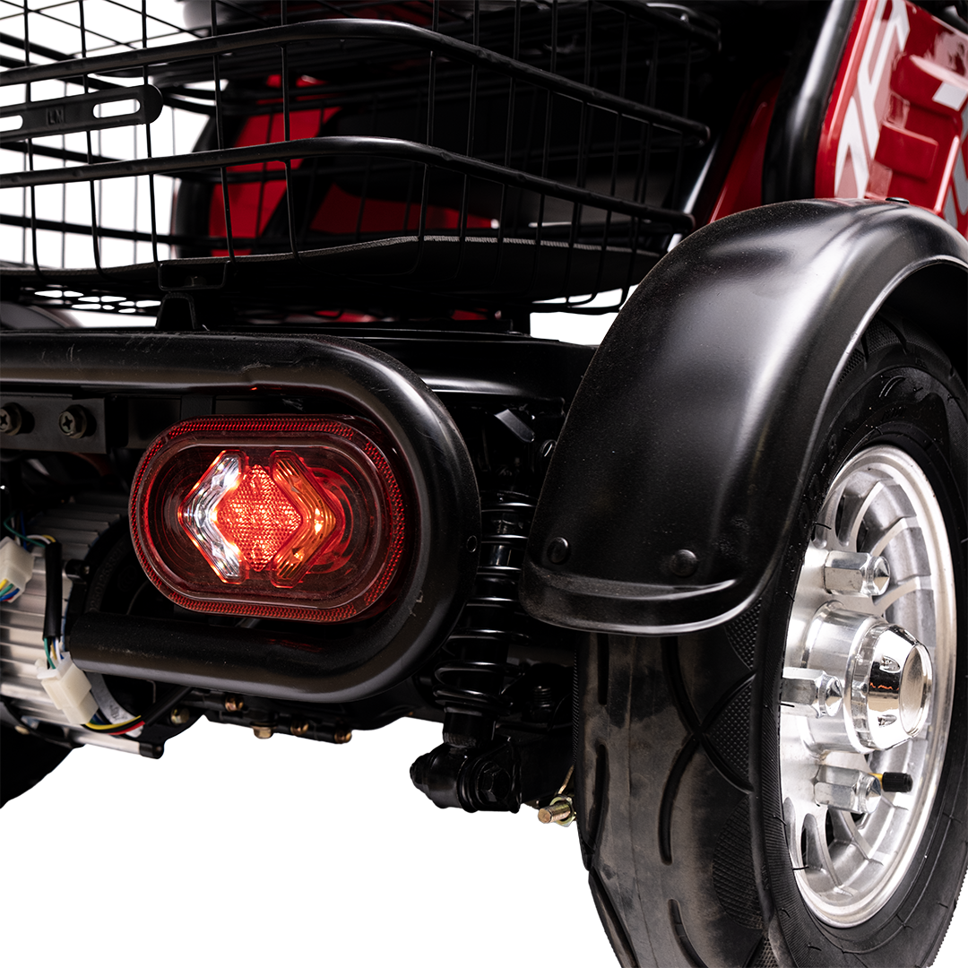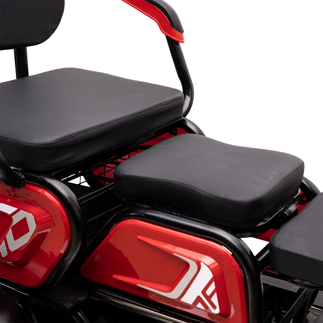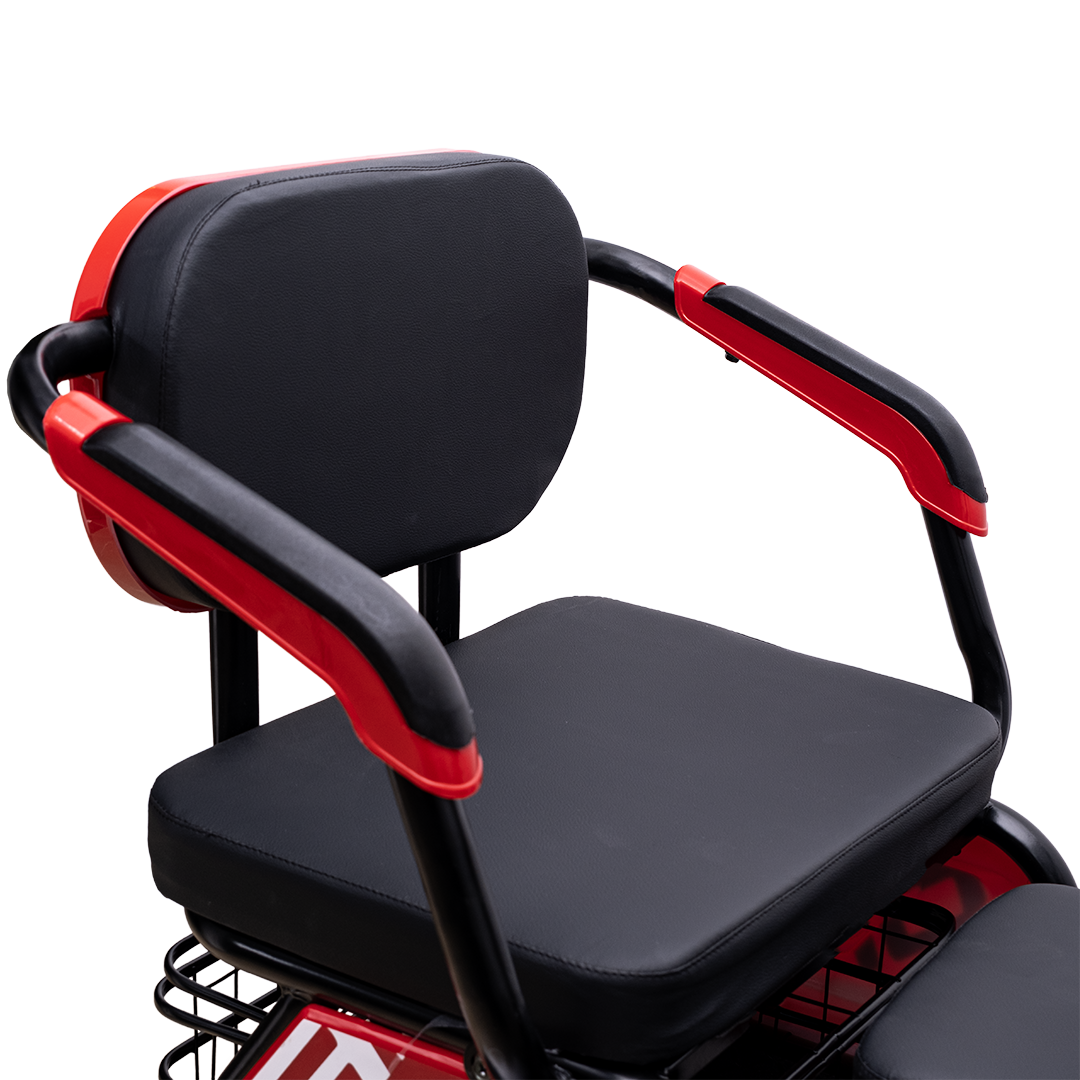 Электрический трицикл с задним приводом, не требует регистрации в ГАИ и водительских прав. предназначенный для устойчивых и комфортных поездок, по городским и частным маршрутам.  Номинальная мощность 240 Вт пиковой 600Вт, аккумулятор на 48 В и скорость до 25 км/ч делают модель функциональной и удобной в повседневной эксплуатации. Грузоподъёмность — до 200 кг.