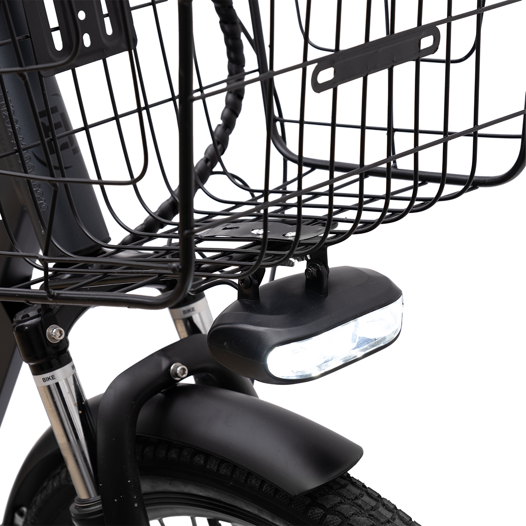 Вес - 33 кг. ECOLINER  e-alfa  - отличный выбор для людей предпочитающих комфортные городские передвижения и прогулки на природе. Это надежный и качественный транспорт, который будет отличным индивидуальным средством передвижения в тяжелых условиях. Жители деревень и дачных поселков полюбят его в качестве повседневного помощника. Ведь эта модель без проблем справляется с любым типом покрытия, от асфальта до бездорожья. Большую корзину, расположенную спереди, можно применять для перевозки малых грузов. Наличие амортизационной передней вилки, защиты на цепи и крыльев с брызговиками, и прочной подножки. Все это предоставляет дополнительный комфорт. В ночное время или при тяжелых погодных условиях безопасность езды обеспечат яркая светодиодная фара и задний фонарь, а также габаритные зеркала с повышенным углом обзора. Надежная рама из стали, мотор номинальной мощностью 240 Ватт который в пике развивает до 500 Ватт, усиленные обода и качественные шины - эти качества делают модель отличным эко транспортом.