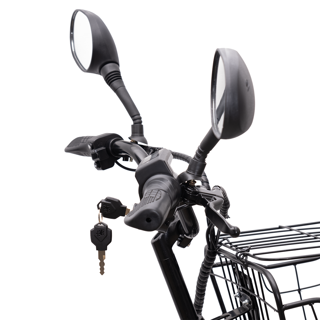 Вес - 33 кг. ECOLINER e-alfa  - отличный выбор для людей предпочитающих комфортные городские передвижения и прогулки на природе. Это надежный и качественный транспорт, который будет отличным индивидуальным средством передвижения в тяжелых условиях. Жители деревень и дачных поселков полюбят его в качестве повседневного помощника. Ведь эта модель без проблем справляется с любым типом покрытия, от асфальта до бездорожья. Большую корзину, расположенную спереди, можно применять для перевозки малых грузов. Наличие амортизационной передней вилки, защиты на цепи и крыльев с брызговиками, и прочной подножки. В ночное время или при тяжелых погодных условиях безопасность езды обеспечат яркая светодиодная фара и задний фонарь, а также габаритные зеркала с повышенным углом обзора. Надежная рама из стали, мотор номинальной мощностью 240 Ватт который в пике развивает до 500 Ватт, усиленные обода и качественные шины - эти качества делают модель отличным эко транспортом