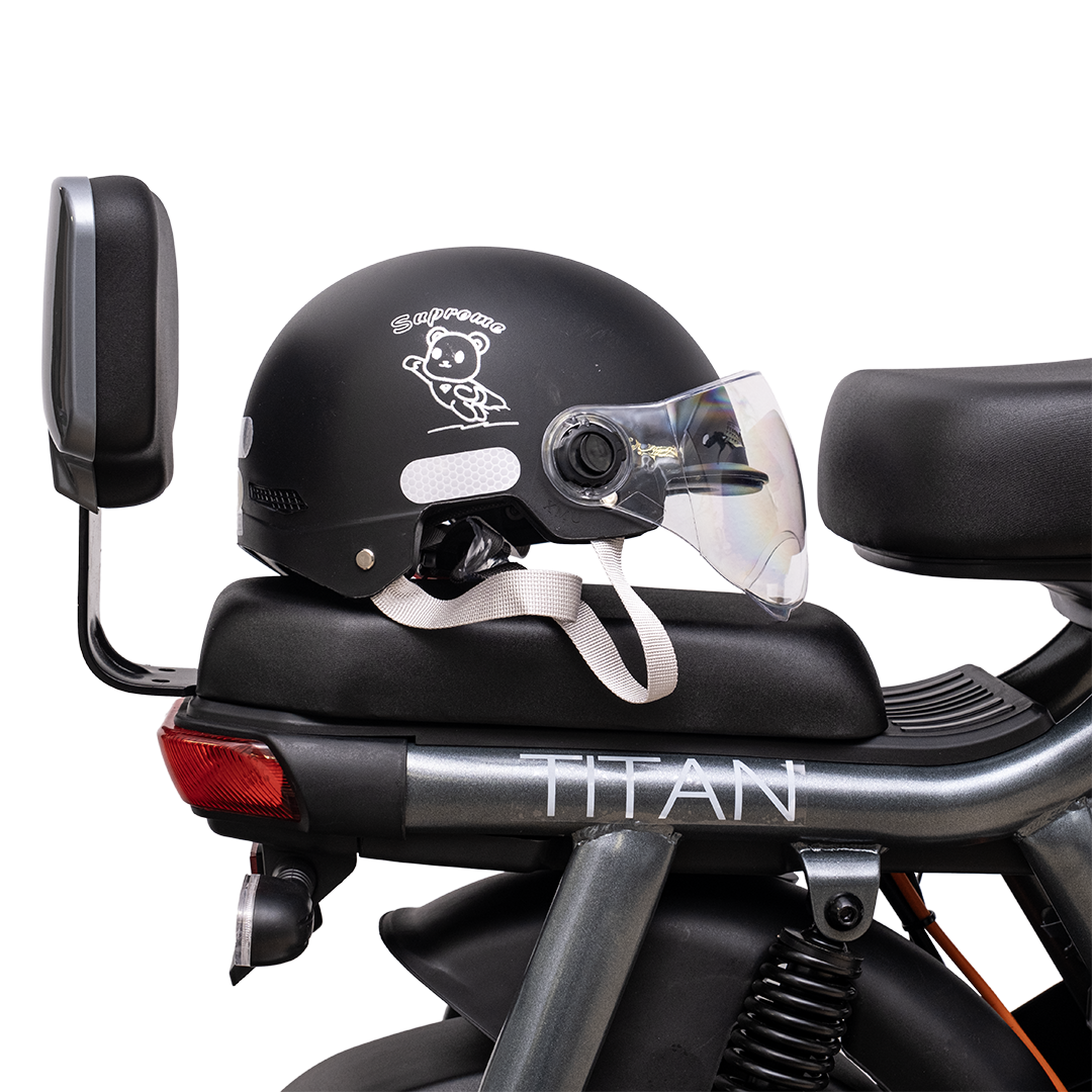 Электрический велосипед Ecoliner Titan – двухместный с загрузкой 150кг, не требующий водительских прав, Максимальная скорость 25 км/ч, при этом она может достигать 45 км/ч. Благодаря мощному бесщеточному электродвигателю, установленному в заднем колесе, номинальной мощностью 240w, в пике развивающему 1000w. Пробег при скорости в 25 км/ч – 45-55км. Этому способствует батарея 60 В 23 А·ч, и мощному синусойдному контроллеру с 12 ключами. Установлены мотошины 10” (аналог 14 более простой) что поспособствует более высокой износостойкости. минимум в 2 раза относительно 14”. Дисплей жидкокристаллический, цветной. Для более плавной и комфортной езды установлены передний и задний амортизаторы и дополнительными подставками для ног. Спереди расположена корзина. Сигнализация с 2мя брелками. Мощный свет который обеспечивается 2мя фарами. Указатели поворотов со звуковым сигналом. Две подножки дадут вариативность установки на любой поверхности. В подарок при покупке вы получите шлем с защитным щитком.