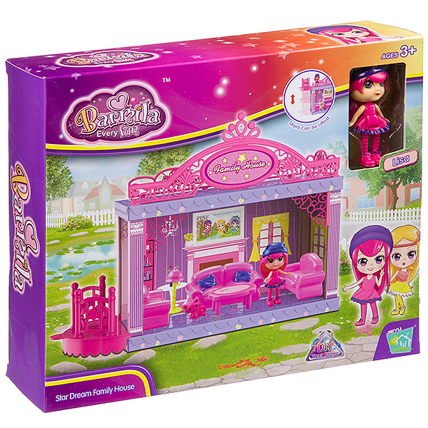 Милая кукла с очень приятным личиком и красивой прической, стильная и нежная – хорошая подружка для своей хозяйки-малышки. Ее просто взять с собой в садик или на прогулку. Этот набор оценит любая девочка, любящая играть в куклы. Набор игровой. Family House. В наборе: панели, колонны (пластмасса), стены (картон). В составе набора - фигурка из ПВХ 8 см. (Кукла, с шаринром по середине - может наклоняться; голова и руки поворачиваются), мебель, наклейки. Размер в сборе: 32*24*12 см