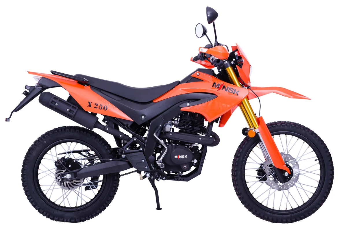 Если вы ищете мотоцикл для путешествий или для занятий экстремальными видами спорта, то MINSK X 250 оранжевого цвета - отличный выбор. Это надежный и удобный транспорт, который никогда вас не подведет и всегда станет верным спутником в любых условиях.