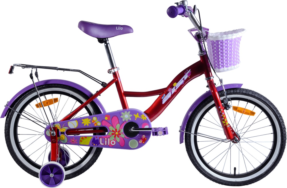Aist Lilo 18 - яркий детскийвелосипед для девочек с ростом от 110 см. Стальная рама прочна и надежна. Приставные колеса помогут научить малыша держать равновесие. Передний ободной механический и задний ножной тормоза помогут безопасно остановиться. Седло и руль регулируются по высоте, их можно настроить под рост малыша и кататься долгое время. Защита цепи добавит безопасности прогулкам, щитки защитят одежду малыша от брыгз грязи и воды. На велосипеде установлены корзинка и багажник - любимые игрушки можно взять с собой на прогулку.