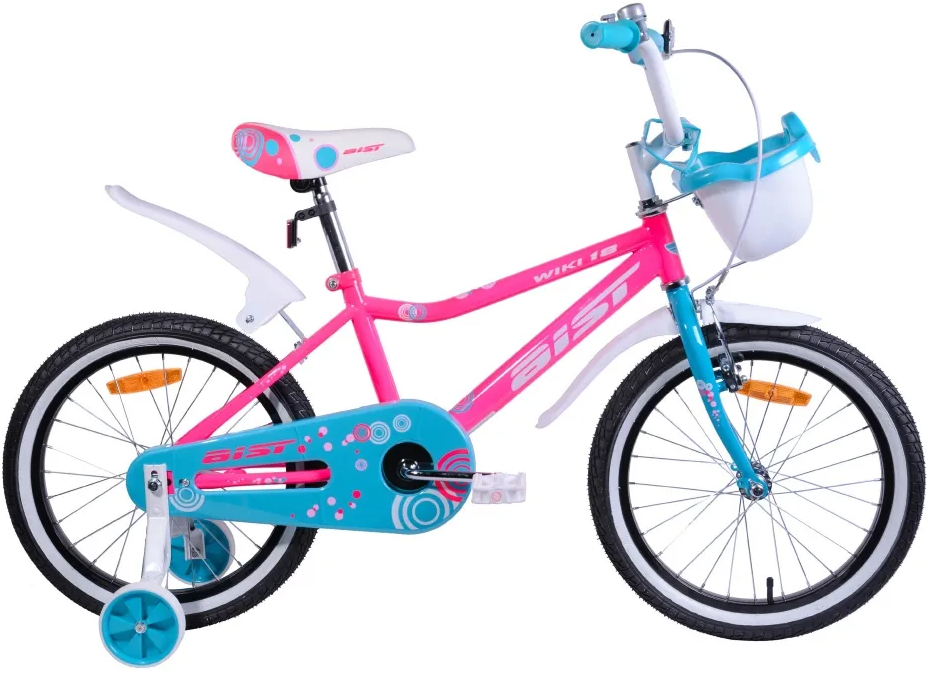 Aist Wiki 16 - яркий детскийвелосипед для девочек с ростом от 100 см. Стальная рама прочна и надежна. Приставные колеса помогут научить ребенка держать равновесие. Передний ободной механический и задний ножной тормоза помогут безопасно остановиться. Седло и руль регулируются по высоте, их можно настроить под рост ребенка и кататься долгое время. Защита цепи добавит безопасности прогулкам, щитки защитят одежду малыша от брыгз грязи и воды. На велосипеде установлена корзинка - можно взять игрушки с собой на прогулку.