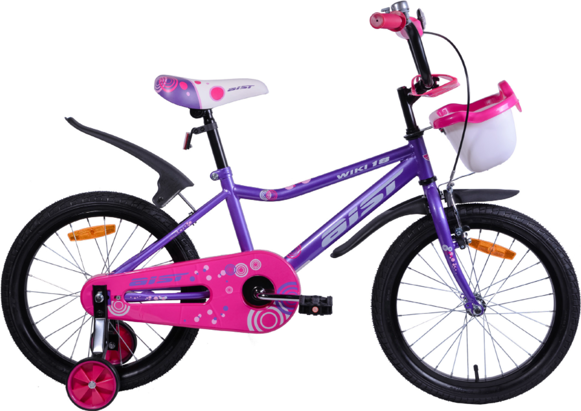 Aist Wiki 18 - яркий детскийвелосипед для девочек с ростом от 110 см. Стальная рама прочна и надежна. Приставные колеса помогут научить ребенка держать равновесие. Передний ободной механический и задний ножной тормоза помогут безопасно остановиться. Седло и руль регулируются по высоте, их можно настроить под рост ребенка и кататься долгое время. Защита цепи добавит безопасности прогулкам, щитки защитят одежду малыша от брыгз грязи и воды. На велосипеде установлена корзинка - можно взять игрушки с собой на прогулку.