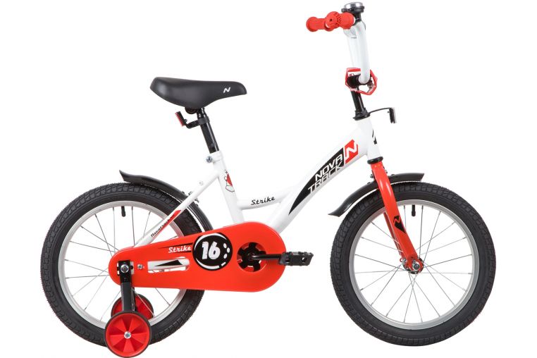 —Велосипед NOVATRACK 16" STRIKE красный, тормоз нож, крылья корот, полная защита цепи