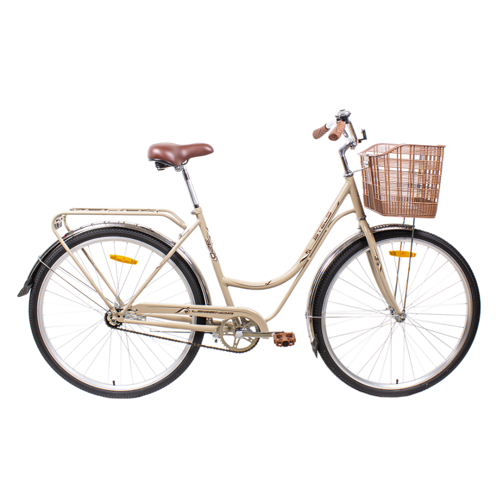 Классическая модель дорожного Велосипеда от известного российского производителя. Велосипед Stels Legenda 320 28C Светло-бежевый является одной из самых популярных в своей линейке, и это не удивительно, ведь он предлагает стильный внешний вид и комфорт за доступную цену. В его основе лежит прочная рама, сделанная из качественного стального сплава. Ее геометрия позволяет легко садиться и слезать, без риска ударится о верхнюю трубу. Большой диапазон регулировок по высоте руля и большого сиденья, помогает найти удобную посадку не зависимо от роста и веса. Диаметр колеса составляет 28x1.75 дюймов, а шины установлены с гладким, дорожным протектором. Они дают отличный накат и высокую плавность хода. В приводе нет ничего лишнего, поэтому он действительно очень надежен и не прихотлив в обслуживании. Стоит отметить, что большие крылья, подножка, багажник и корзина входят в штатное оснащение модели.