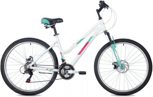 Foxx Bianka 26 D - стильная женская горная модель с навесным оборудованием начального уровня. Подходит для велопрогулок как по городу - велодорожкам и паркам, так и по тропинкам сельской местности. Велосипед собран на алюминиевой раме, легкой и прочной. Амортизационная вилка с ходом 50 мм добавит комфорта при езде по неровным дорогам. Дисковые механические тормоза эффективно срабатывают даже в неблагоприятных погодных условиях. Трансмиссия на 18 скоростей обеспечит легкость и динамику вашим поездкам при подъемах в гору, спусках, во время преодоления небольших препятствий. Открытая женская геометрия рамы обеспечит легкую посадку на велосипед и дополнительную безопасность во время катания. Симпатичный дизайн обязательно придется по вкусу любительницам активного образа жизни.