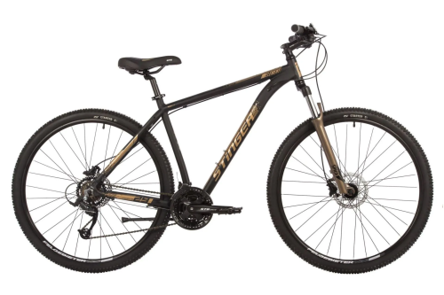 Золотистый оттенок велосипеда придает ему роскошный и привлекательный внешний вид. Велосипед STINGER 29" ELEMENT PRO оснащен надежными компонентами, что делает его подходящим как для городских поездок, так и для многодневных приключений в горах.
