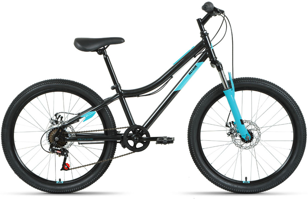 Велосипед ALTAIR MTB HT 24 2.0 D (24" 6 ск. рост. 12") 2022, черный/бирюзовый, IBK22AL24094