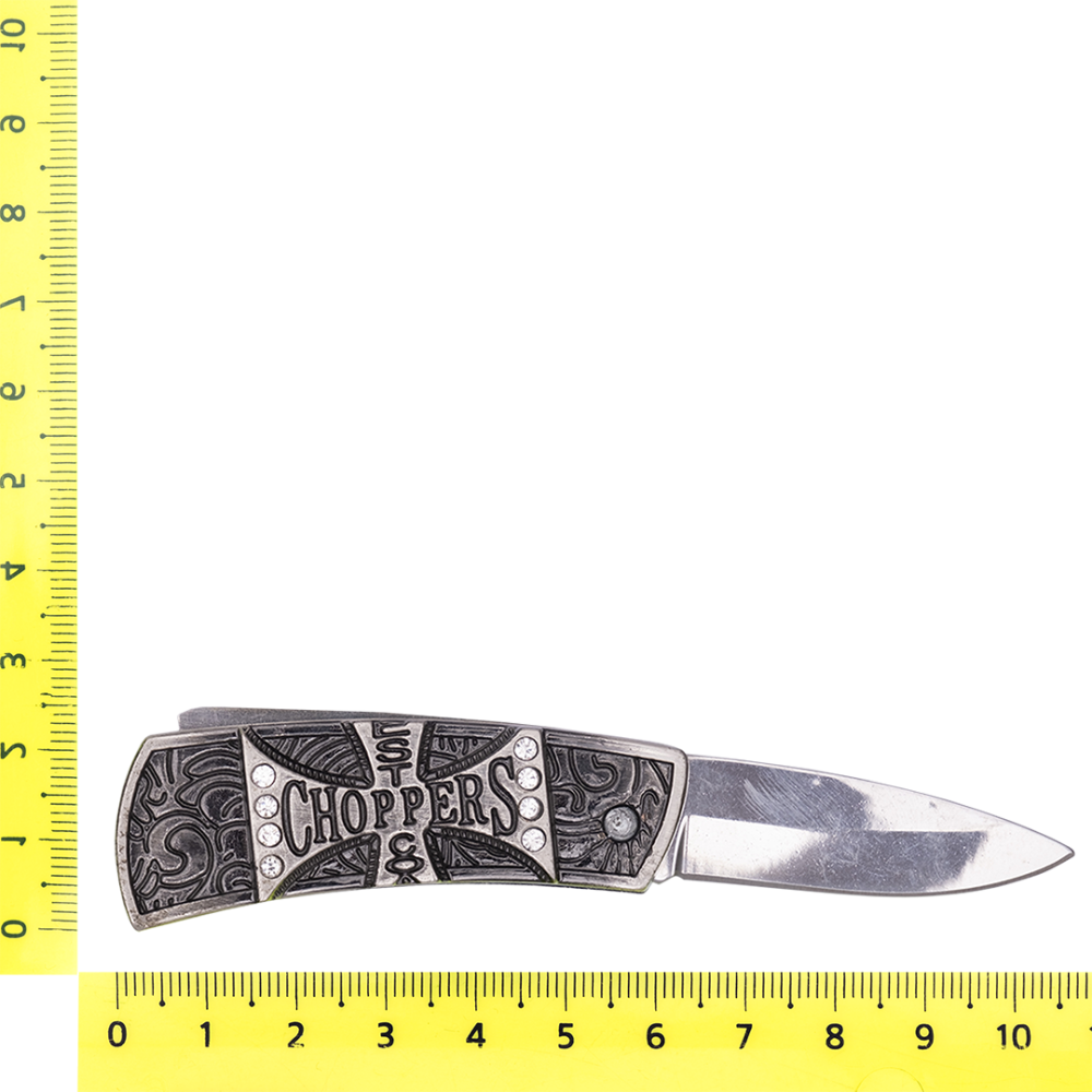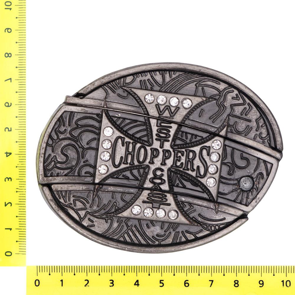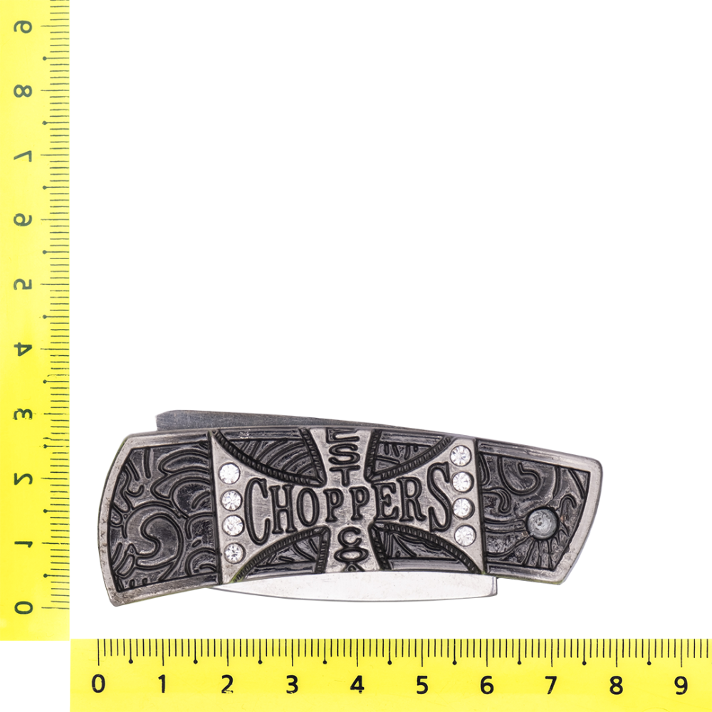 Металлическая пряжка для ремня из серебристого металла с изображением головы льва золотистого цвета. В комплекте перочинный ножик с гравировкой на рукояти, который фиксируется в пряжке.