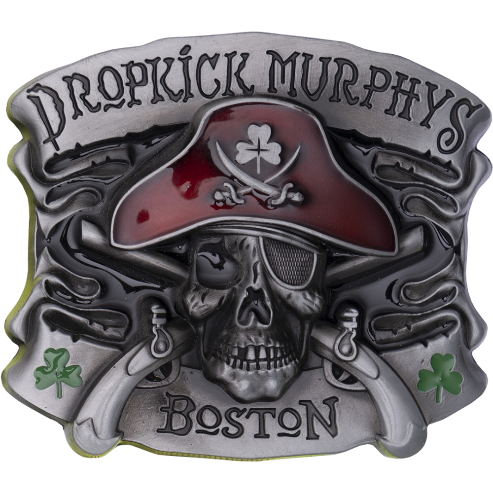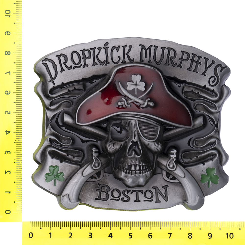 Металлическая пряжка для ремня в пиратском стиле со вставками из цветной эмали.